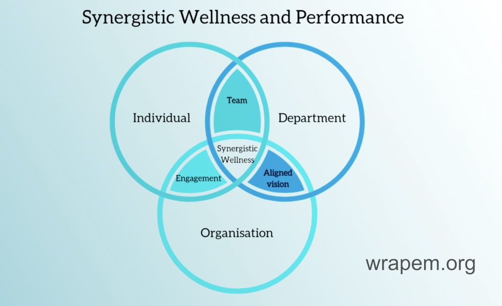 One of the most important pieces of work we did was to conceptualise “Synergistic Wellness”, in response to the debate on “What contributes to our wellness at work and who is responsible for it”.